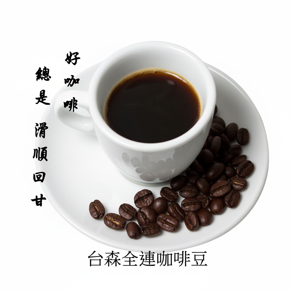The company, Taishen Digital Forest (森林.tw), is dedicated to sourcing and providing products of natural quality and rich origin. They have selected the finest coffee beans—the 台森全連咖啡豆—which live up to the promise: "A good coffee is always smooth and has a sweet aftertaste."