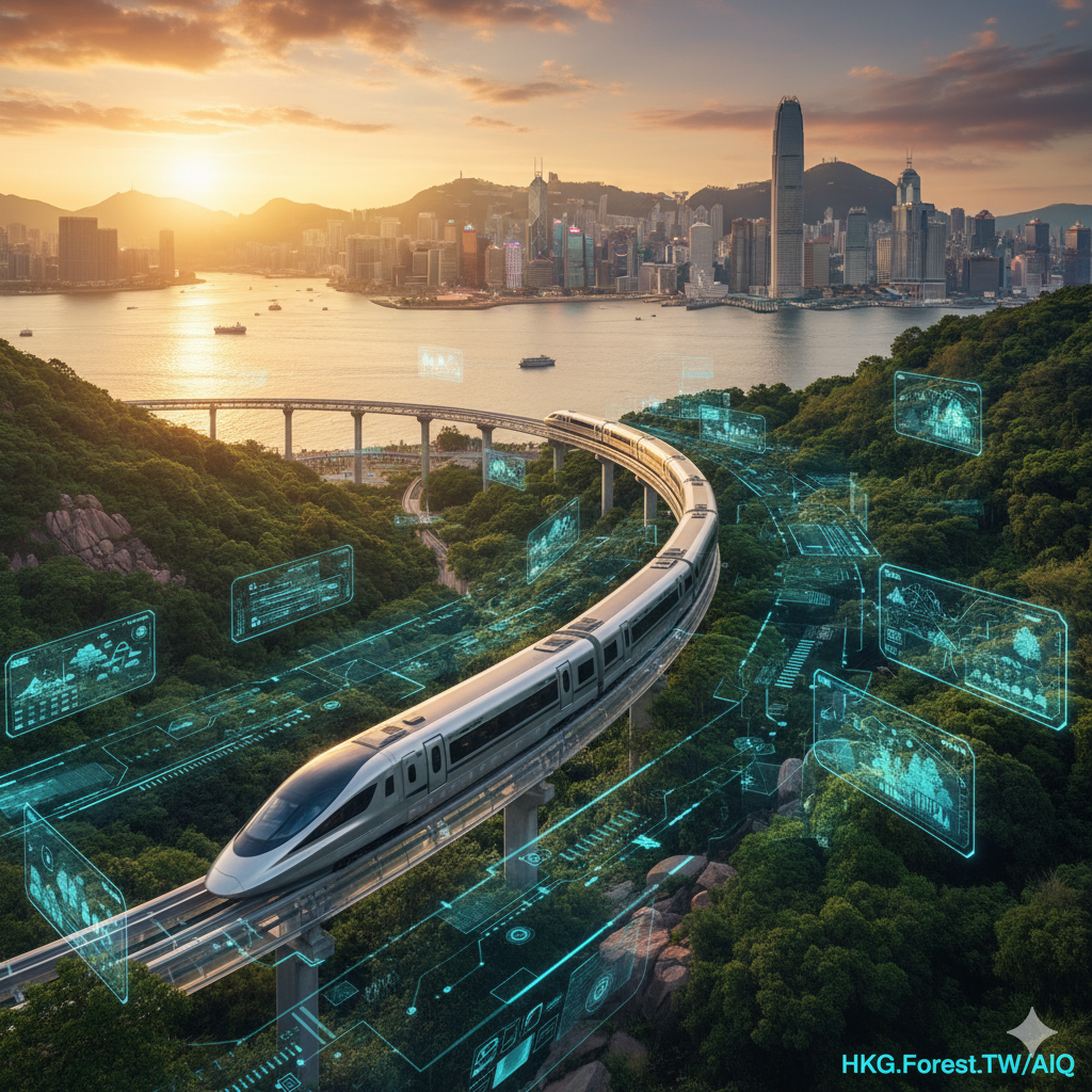 這幅圖像不僅僅是一個視覺作品,更是一個關於智慧城市、永續發展和人與自然和諧共處的宣言,精準傳達了「HKG.Forest.TW/AIQ」所蘊含的國際合作與未來願景。