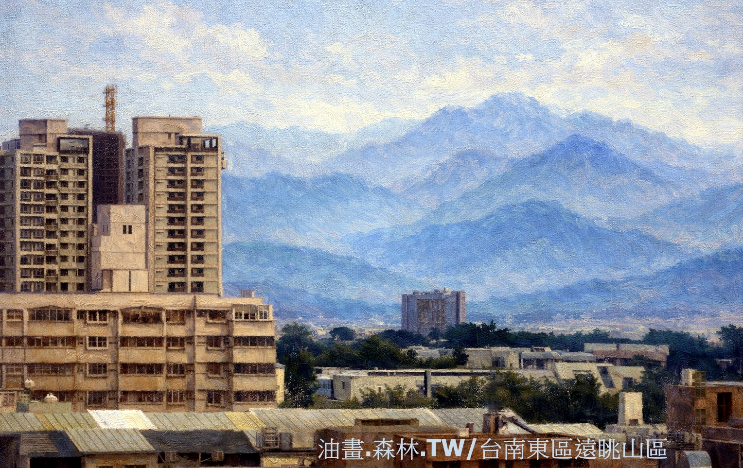 這幅畫是台南東區的溫柔側影,也是「台森企業」對數位文明的期許。它告訴我們:數位技術不應只有冷冰冰的電路,而應具備如油畫筆觸般的厚度,以及如山脈般永續的承載力。